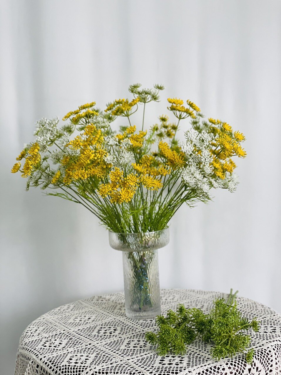 Kết hợp hoa tiểu hồi hương cùng các mẫu hoa khác như hoa mẫu đơn, hoa mao lương hay cành lá decor cao cấp giúp tạo nên tổng thể hài hòa, mềm mại và sinh động cho không gian sống.